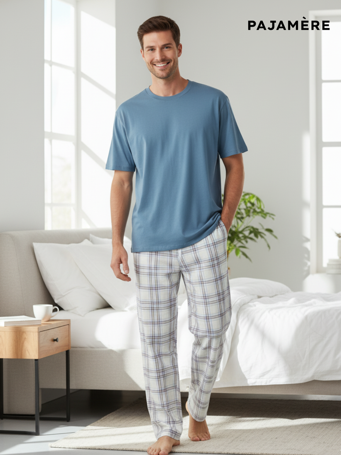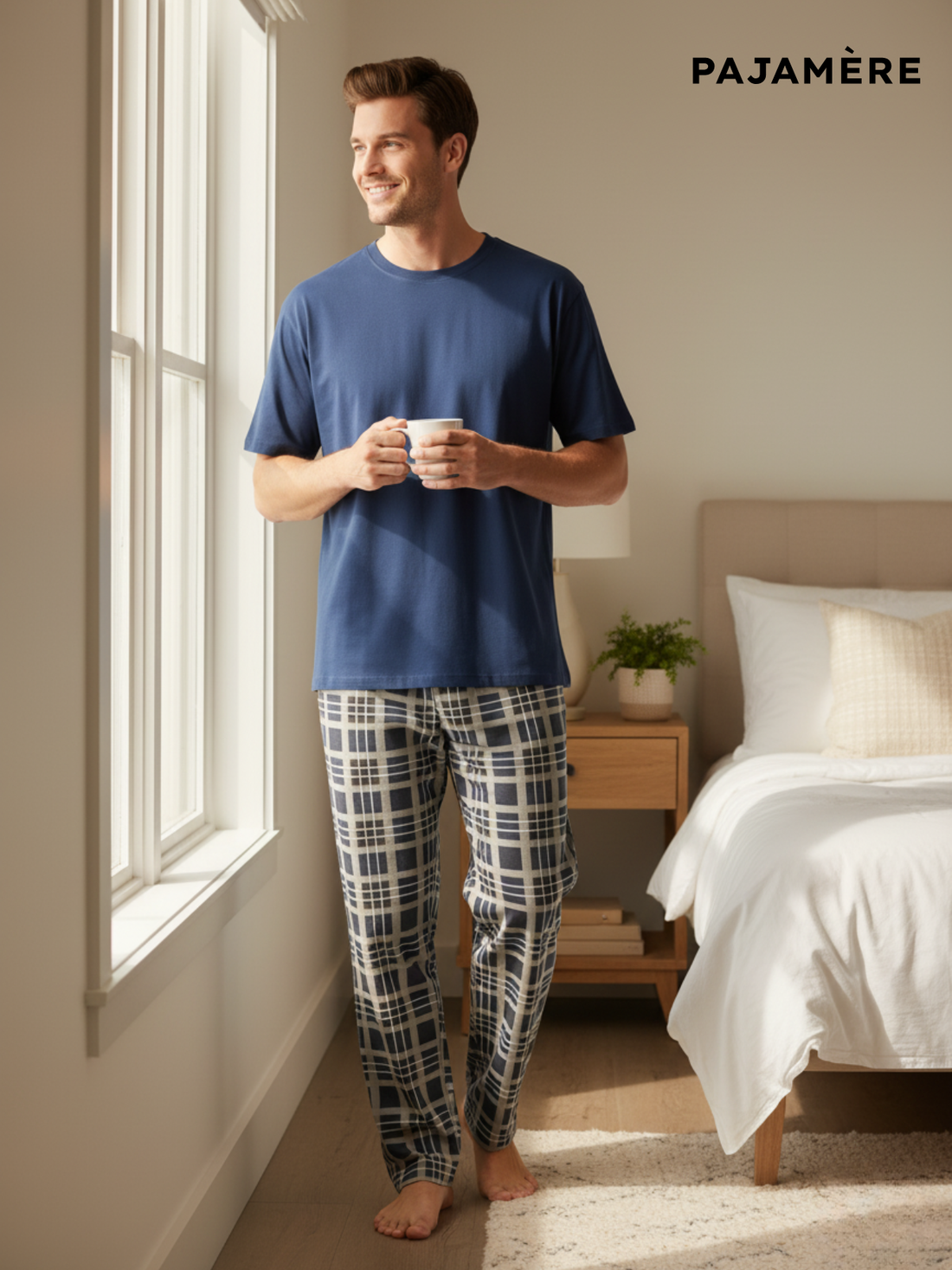 Stay cool and comfy in our Blue Checked Men's Pajama Set 💙 — a perfect...