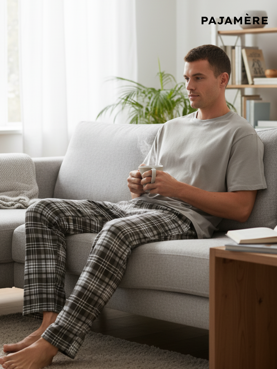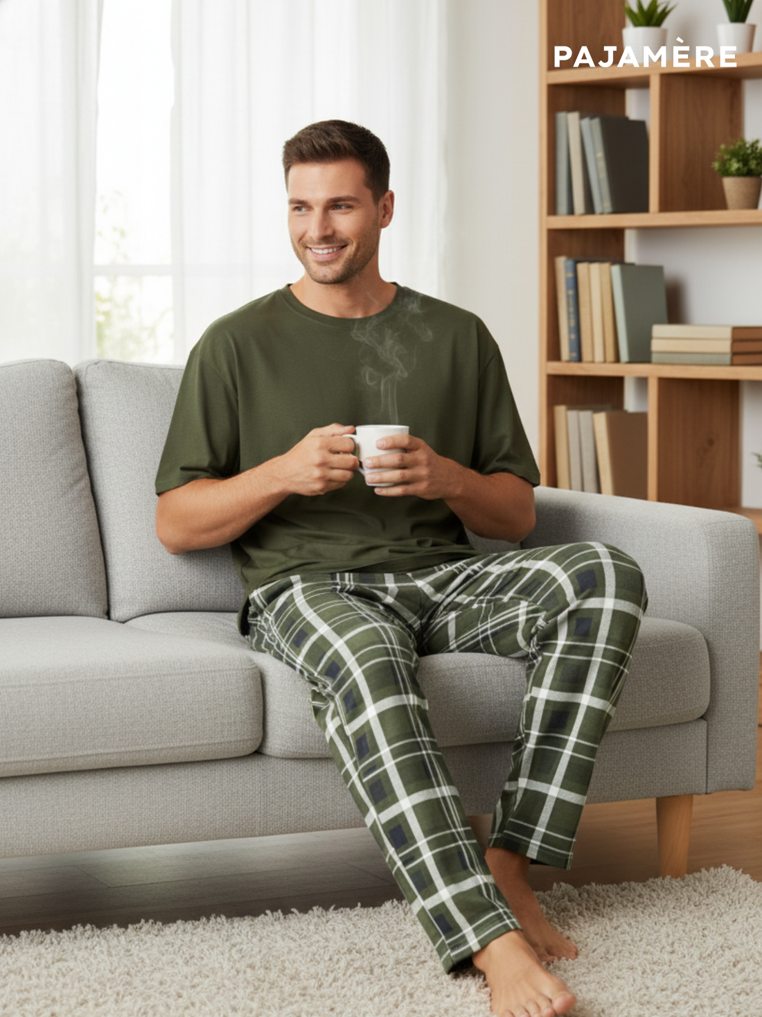 Relax in earthy elegance with our Olive Green Checked Men's Pajama Set 🌿 — the...