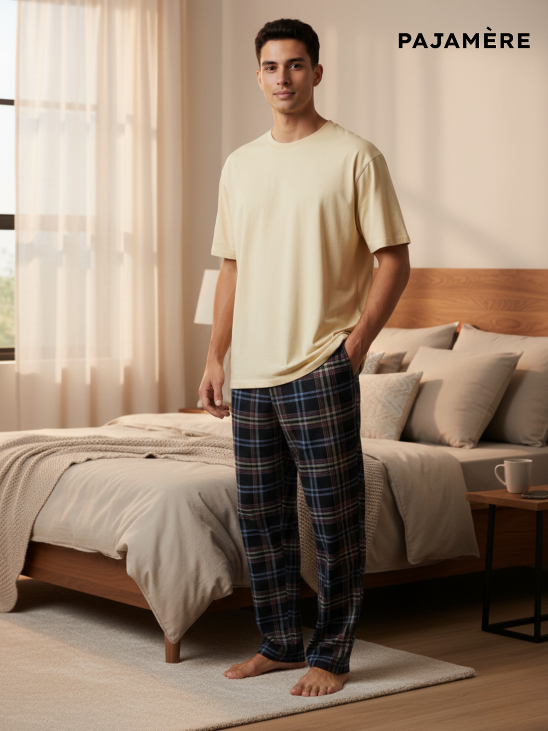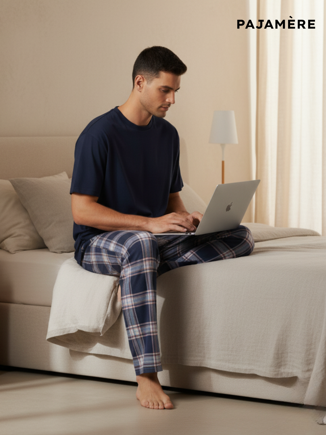 Make comfort bold with our Navy Blue Checked Men's Pajama Set 💙 — where classic...