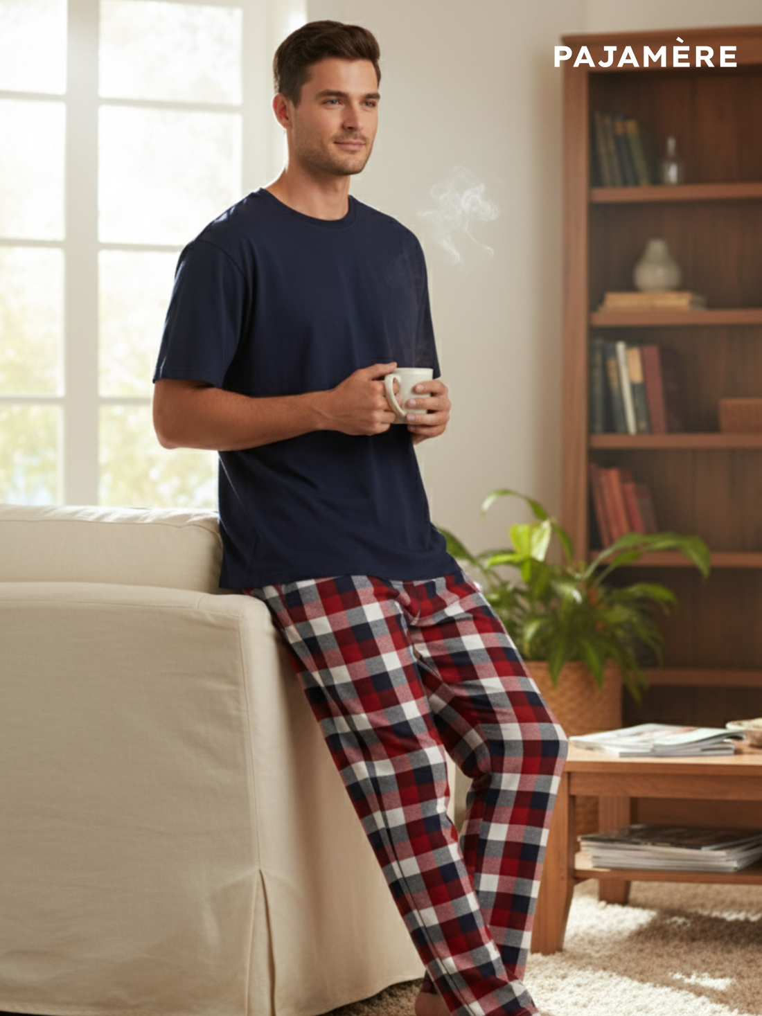 Make comfort bold with our Navy Blue & Red Checked Men's Pajama Set ❤️💙 —...