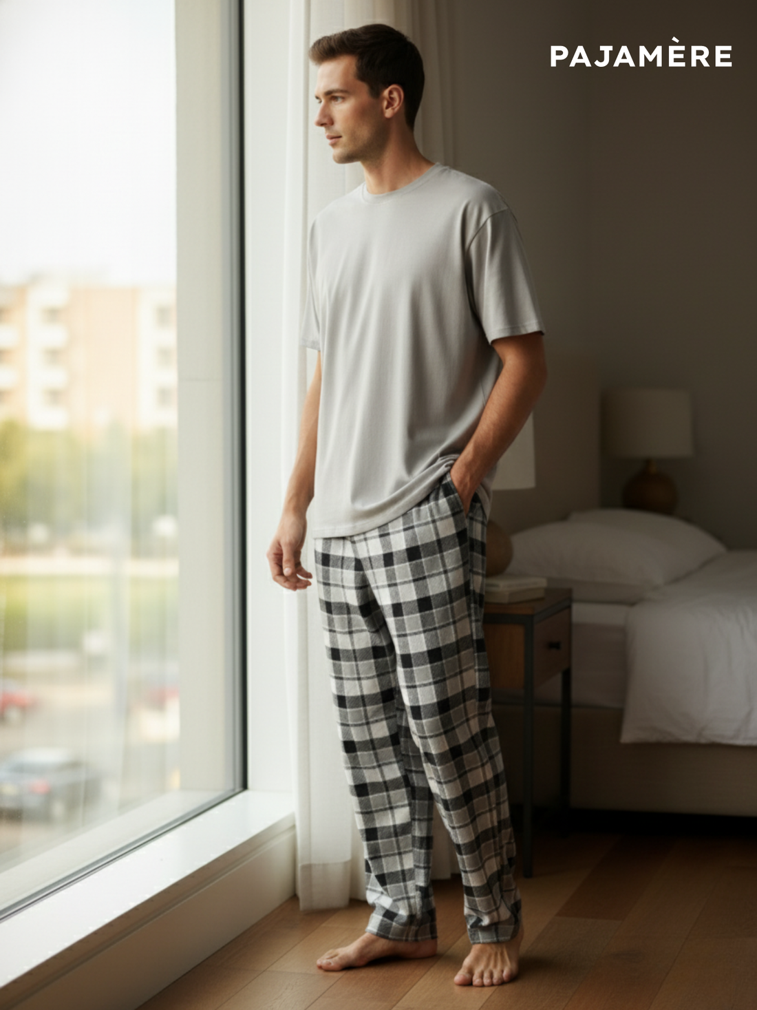 Unwind in effortless style with our Grey Checked Men's Pajama Set 🤍 — designed for...